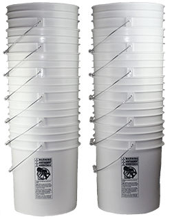 White plastic 5 gallon square bucket w/ wire bale handle with plastic roller grip